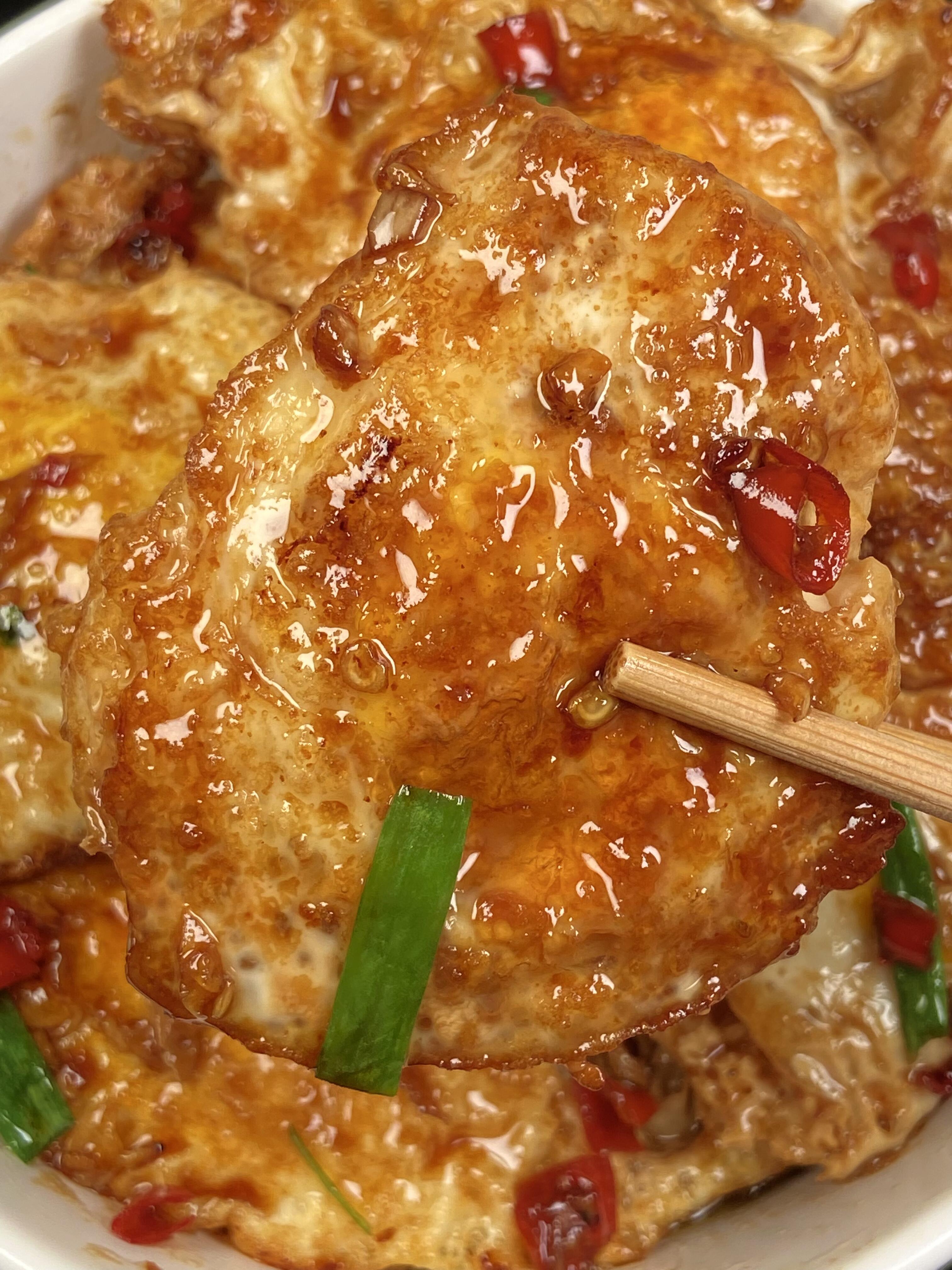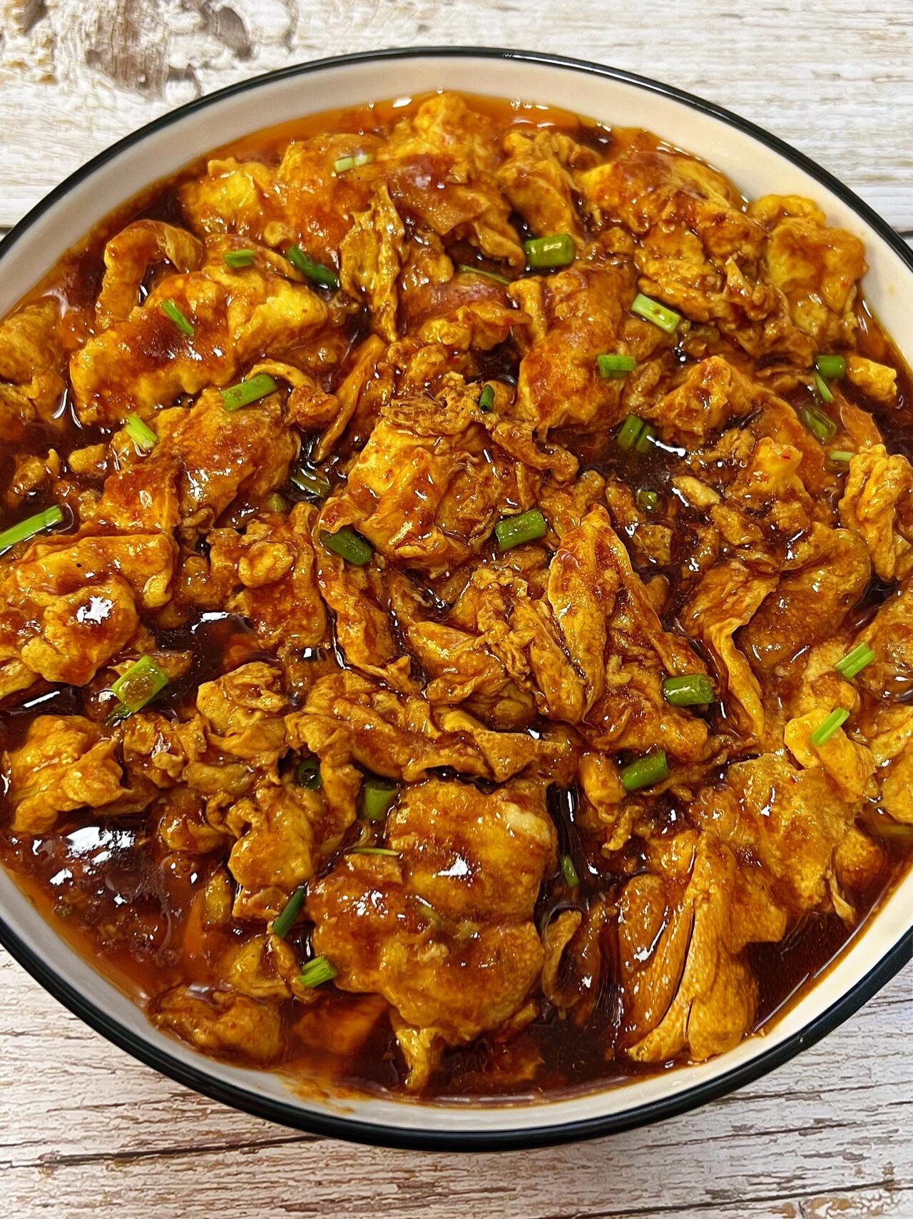 油醋爆炒鸡蛋,堪称鸡蛋的开胃天花板。热油滑散鸡蛋,炒得蓬松鲜嫩,最后淋上调好的油醋汁,大火快速翻炒均匀,酸辣鲜香瞬间裹满每一块鸡蛋。口感滑嫩不腻,清爽解腻又入味,简简单单的做法,却是妥妥的下饭神器,配米饭能多吃一碗。