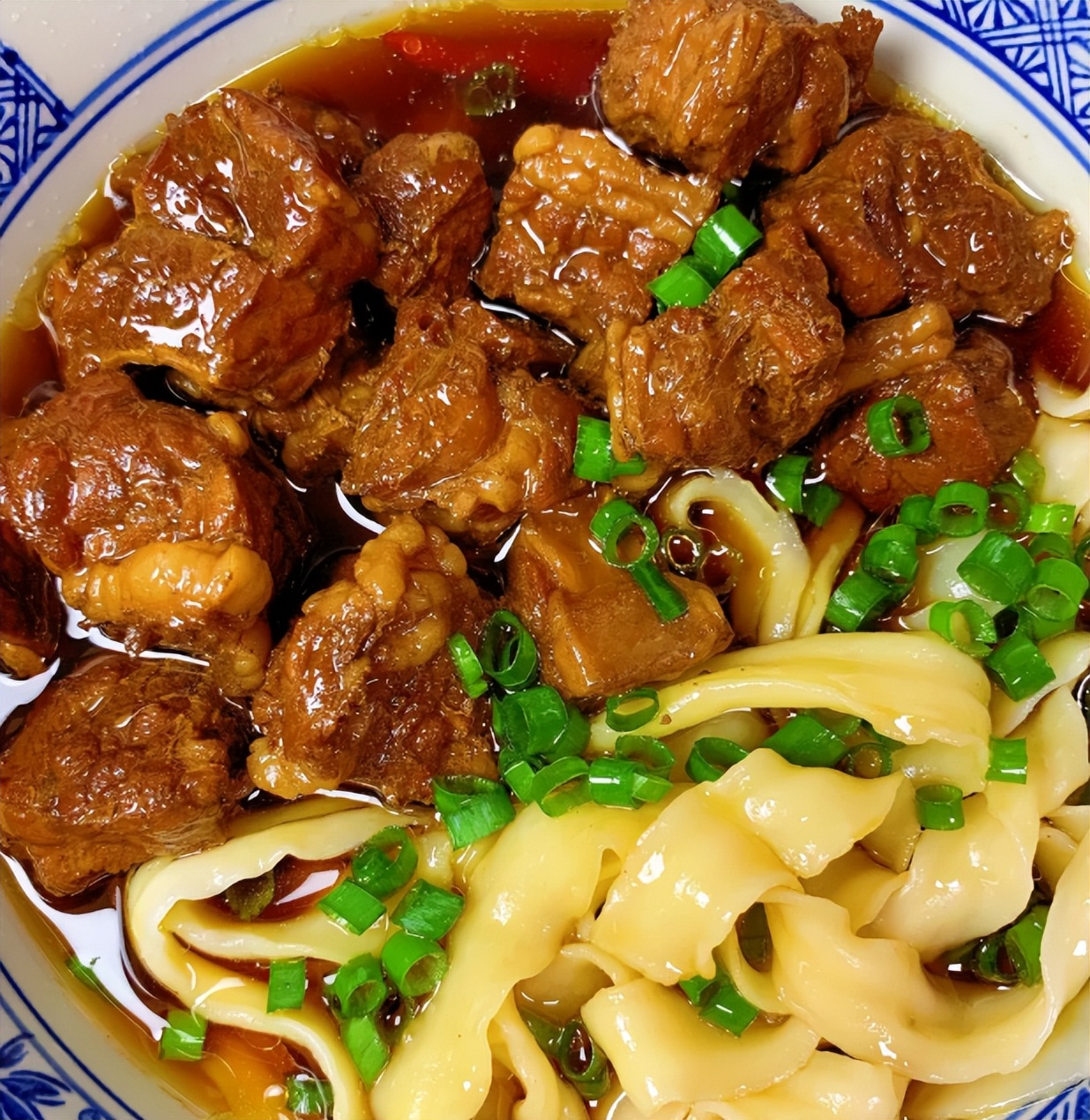 牛腩并不是某一块具体的肉,而是牛腹部及靠近肋骨处的松软肌肉,带有筋、肉、油花,层次很丰富。