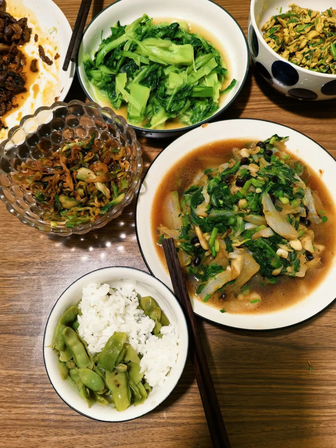 小菜饭,荤腥以外的下饭菜。