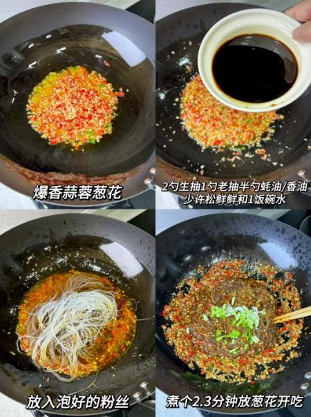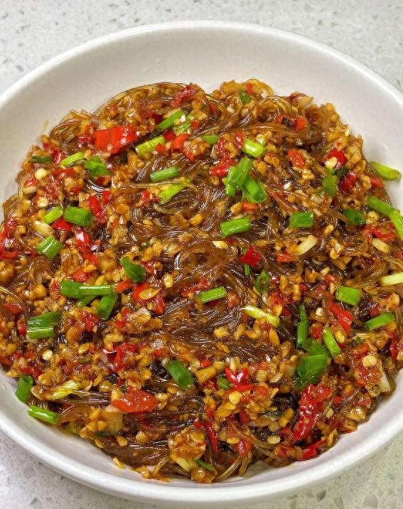 这道香辣蒜蓉粉丝蒜香与辣味交融,粉丝吸满酱汁,口感 Q 弹软滑,香辣开胃,是下饭神器。