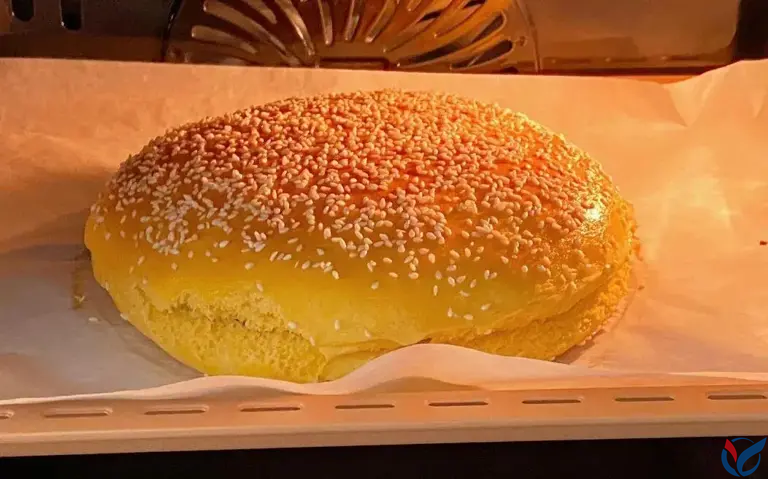 8、烤箱提前预热,180度烤20分钟烤到表面金黄、饼微微鼓起,就可以出炉了。