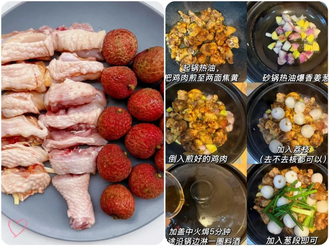 “一颗荔枝三把火” 的说法骗了太多人,其实荔枝性温味甘,是夏天的 “补阳果”,只是直接吃容易燥,和鸡肉一起焖就变得温和 —— 鸡肉吸饱了荔枝的甜,荔枝中和了肉的腻,连汤汁拌米饭都香得让人舔碗。