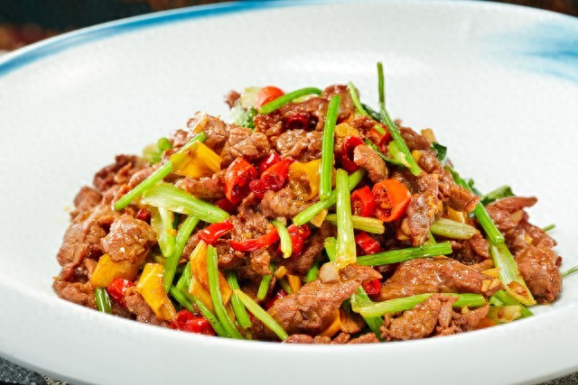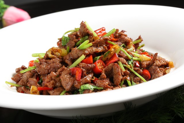 这道菜色泽红亮,香辣开胃,牛肉鲜嫩多汁,辣椒的香气和微微的甜味让人停不下来。它不仅下饭,还能让你感受到湖南辣味的魅力,吃完一盘,米饭分分钟光盘!无论是家庭聚餐还是朋友小聚,这道菜都是绝佳选择。