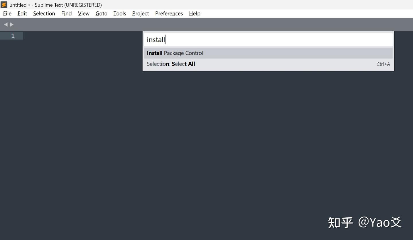 打开 Sublime Text ,按下快捷键 Ctrl + Shift + P 打开命令面板。
