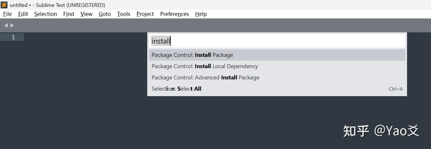 回到 Sublime Text ,按下快捷键 Ctrl + Shift + P 打开命令面板再次输入 install ,出现的结果与原来不同。