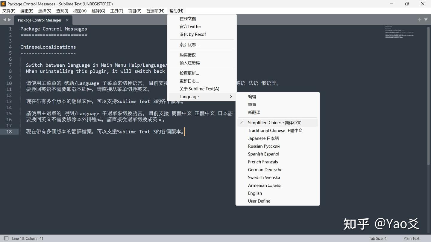 安装成功后,界面就会变成中文,也可通过 帮助/Language 选择其他语言。