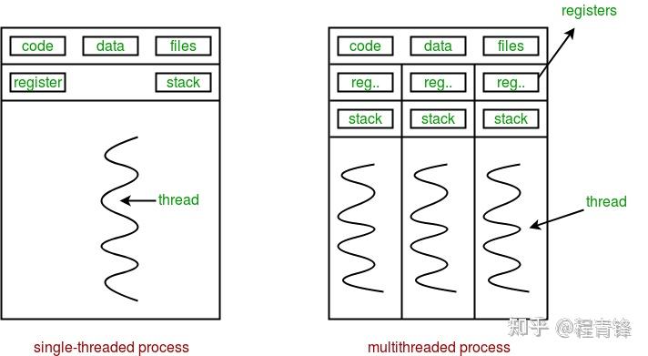 • 进程可以拓展到多机,进程最多适合多核(不同火车可以开在多个轨道上,同一火车的车厢不能在行进的不同的轨道上)