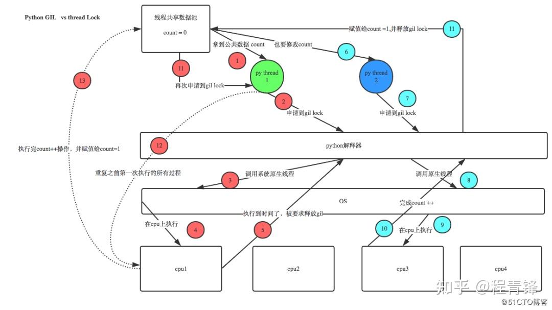 在多线程环境中,Python 虚拟机按以下方式执行: