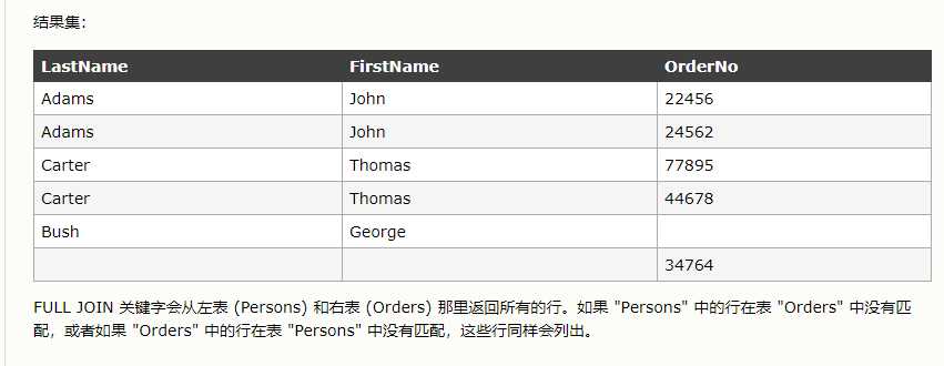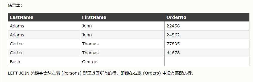 另外,UNION 结果集中的列名总是等于 UNION 中第一个 SELECT 语句中的列名。