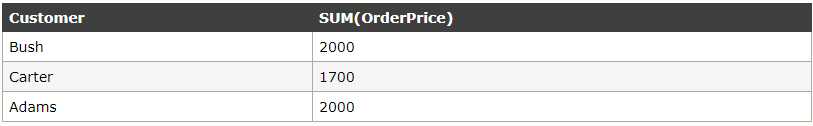 SELECT Customer,SUM(OrderPrice) FROM Orders