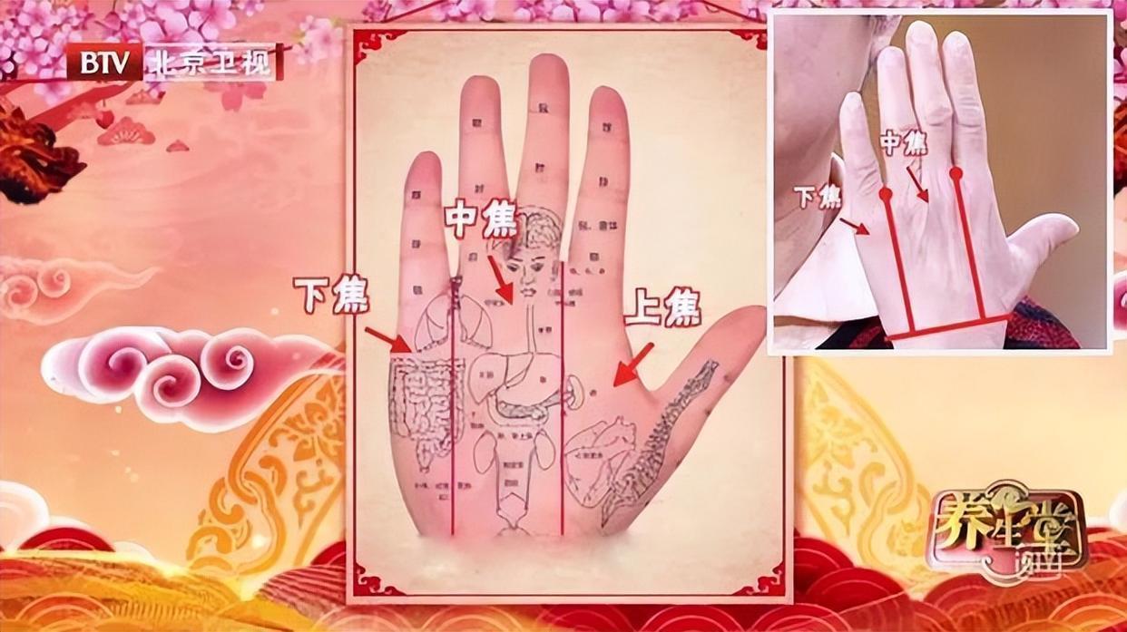 韩医师将人的手掌分为:上焦、中焦、下焦。