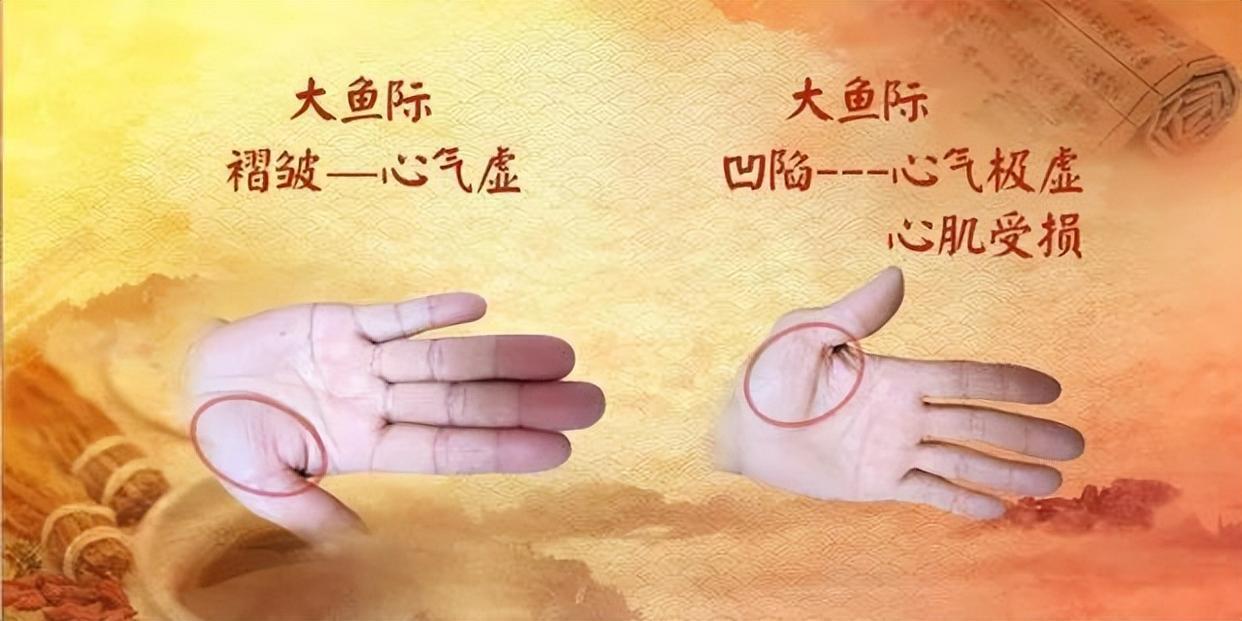 如果出现青筋的基础上,还出现了大鱼际的褶皱,说明心气虚。