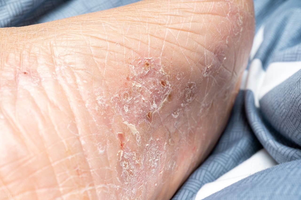 皮肤开始持续脱屑,严重的地方会出现皲裂,走路时脚跟开裂疼痛,冬天尤为突出。趾缝发白、糜烂是真菌大量繁殖后的典型外观,皮肤组织被侵蚀,糜烂面容易渗液。